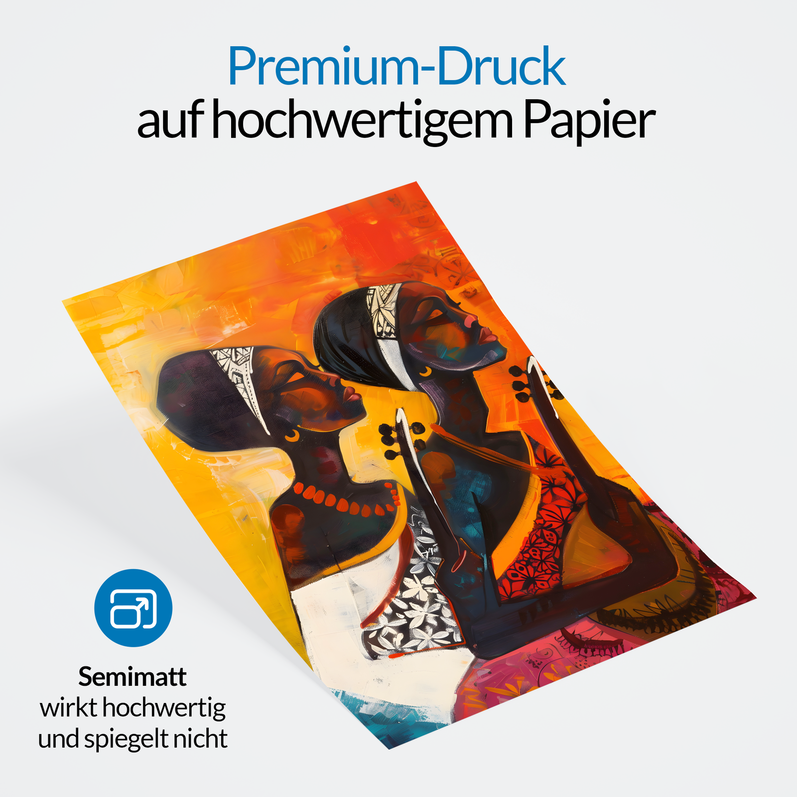 dein einzigartiges Wandbild: du erhältst ein beeindruckendes Poster, das die Schönheit afrikanischer Frauen in einem modernen, abstrakten Design festhält. Dieses hochwertige Druckkunstwerk ist eine Bereicherung für jedes Zuhause und verwandelt dein Wohnzimmer, Schlafzimmer, Büro oder Kinderzimmer in einen stilvollen Raum. Mit diesem dekorativen Poster setzt du kreative Akzente in deiner Wohnraumgestaltung und zeigst deinen Sinn für ethnische und zeitgenössische Kunst.