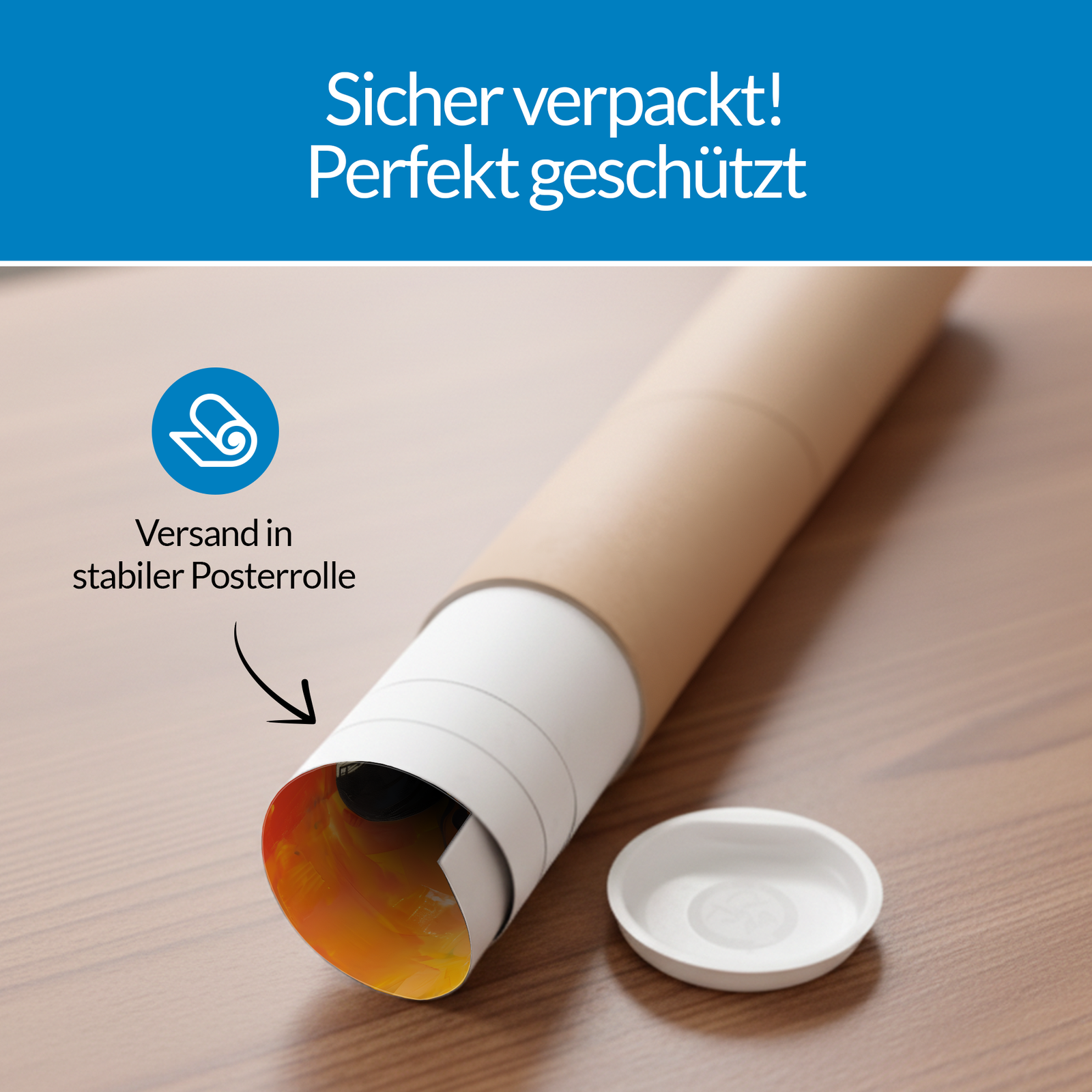 Das Poster wird auf semimatt beschichtetem Papier gedruckt, was die lebendigen Farben und feinsten Details hervorhebt. du bekommst einen langlebigen Kunstdruck, der mit UV-beständigen Tinten gefertigt ist und somit auch nach Jahren strahlt.