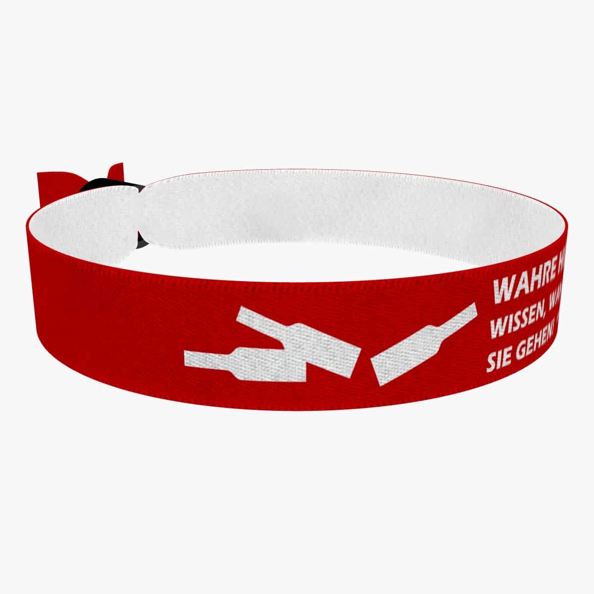 Unsere bedruckten Stoffarmbänder sind dünner & qualitativer als übliche Festivalbänder! Sie sind wasser-, reiss- & abriebfest und werden von uns in Handarbeit produziert!