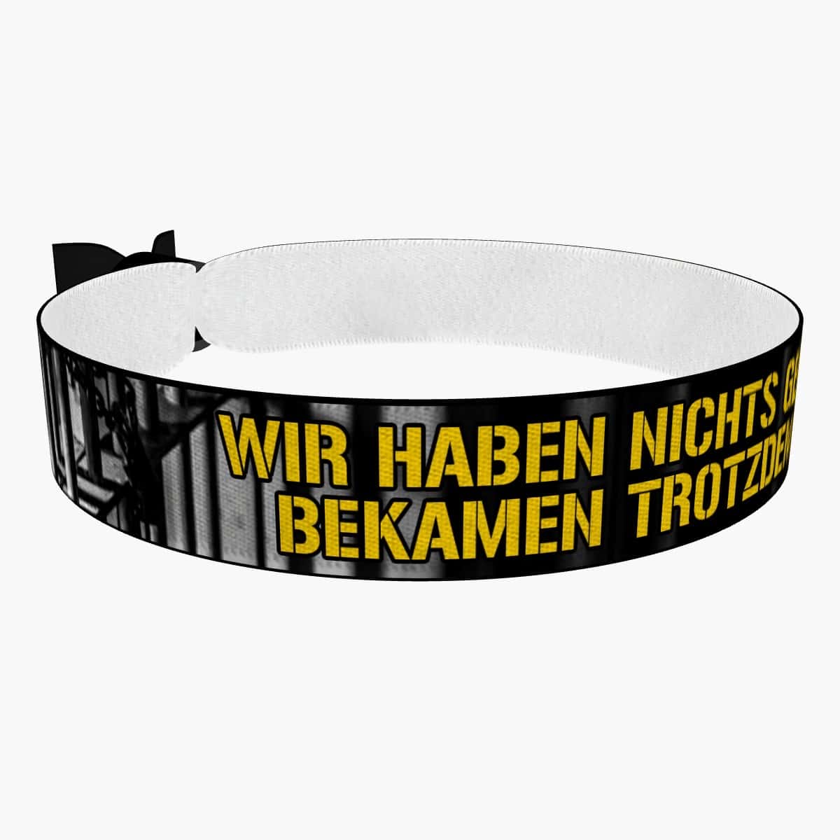 Unsere bedruckten Stoffarmbänder sind dünner & qualitativer als übliche Festivalbänder! Sie sind wasser-, reiss- & abriebfest und werden von uns in Handarbeit produziert!