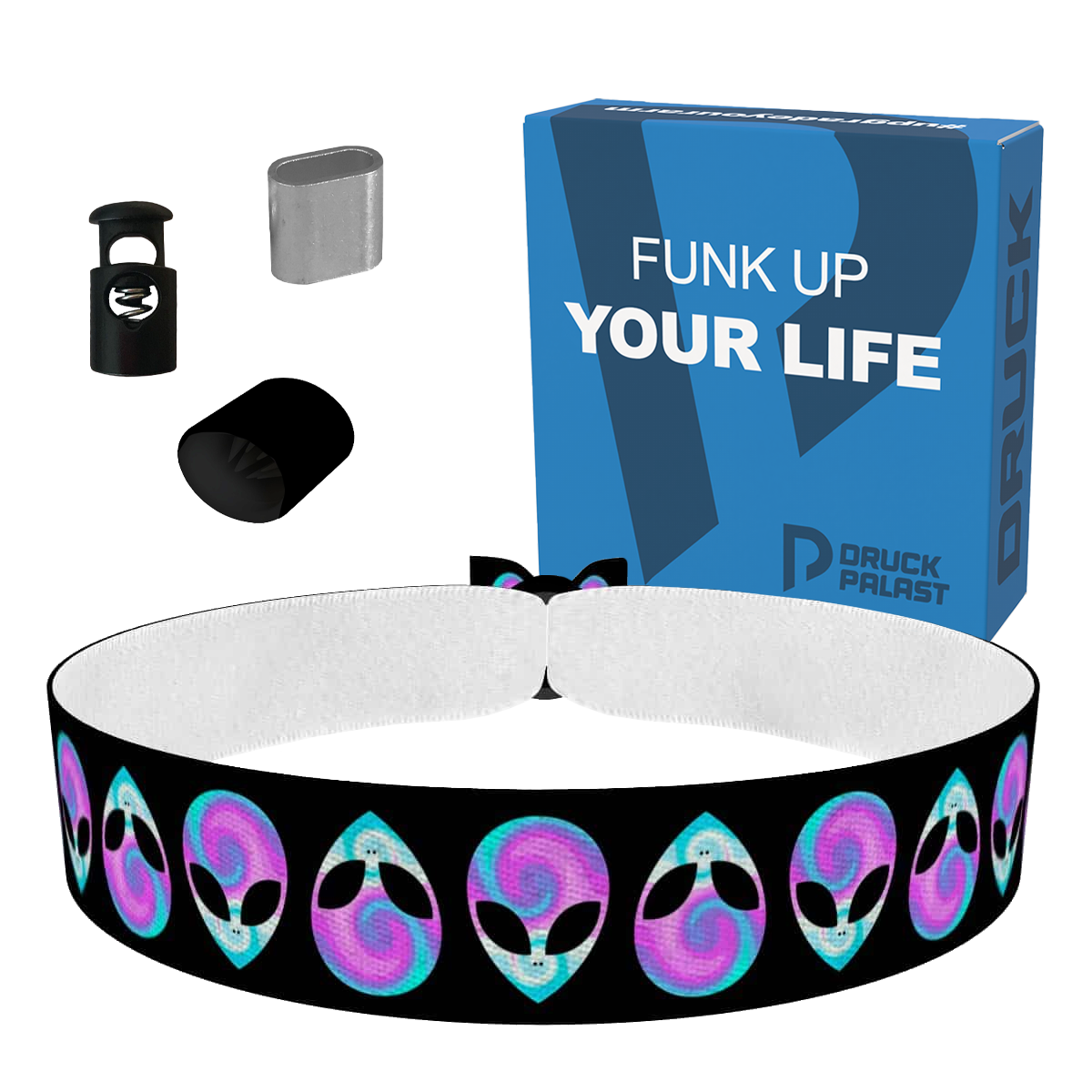Unsere bedruckten Stoffarmbänder sind dünner & qualitativer als übliche Festivalbänder! Sie sind wasser-, reiss- & abriebfest und werden von uns in Handarbeit produziert!