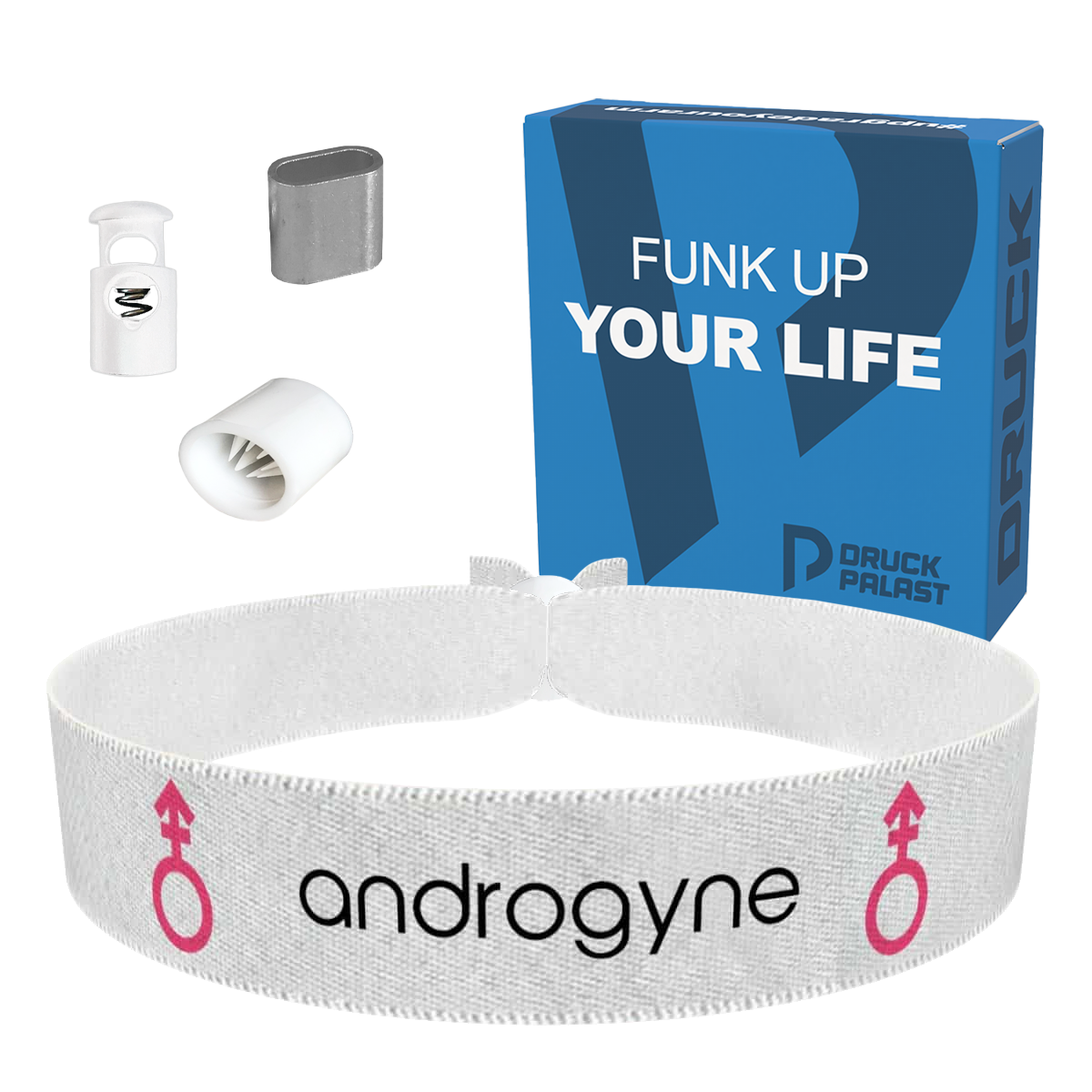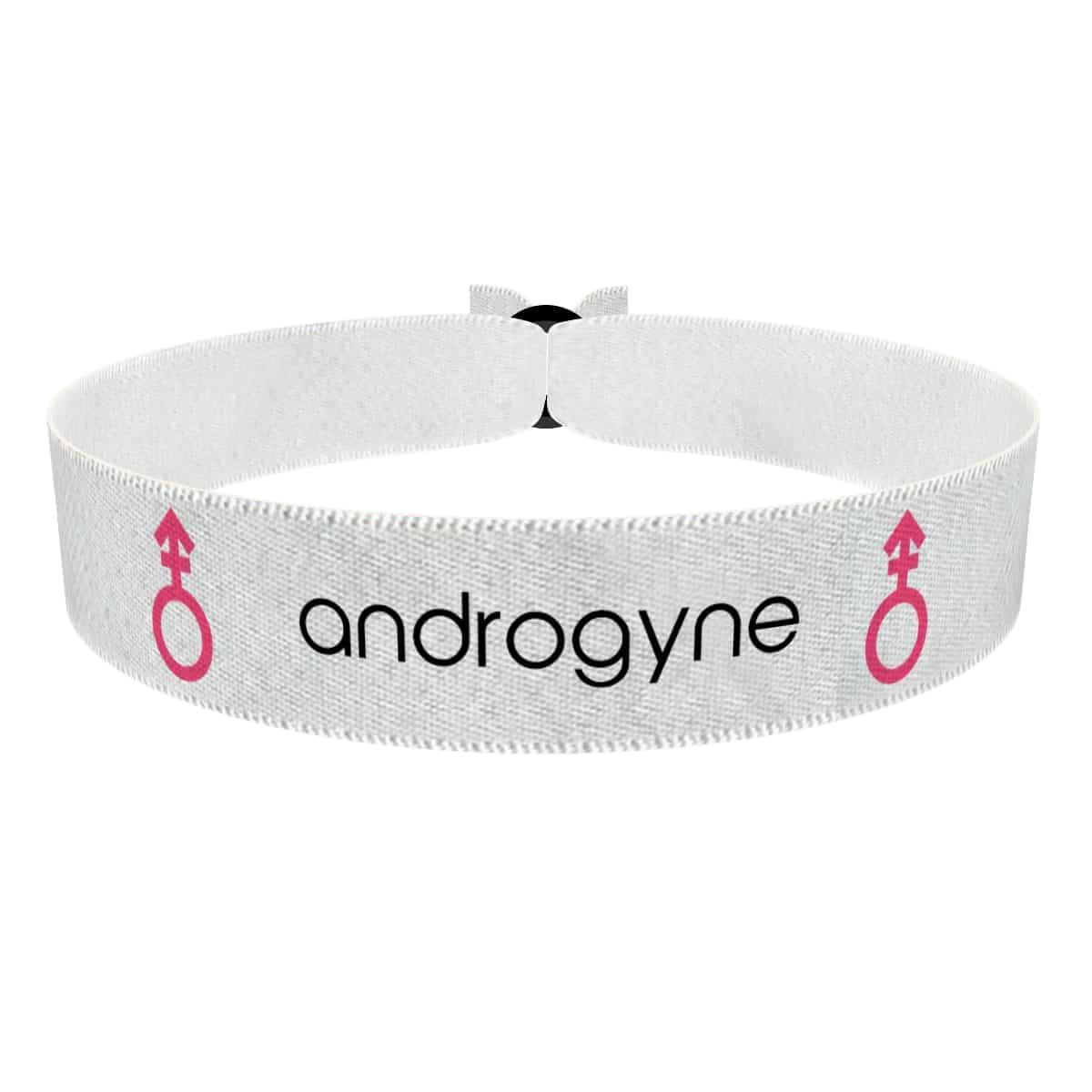 Entdecke das Androgyne Symbol Text Weiß Stoffarmband