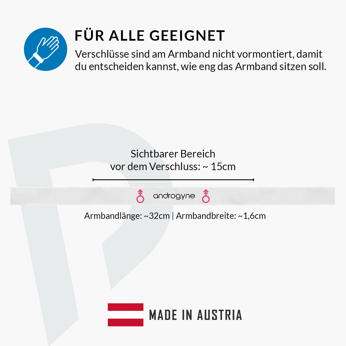 Entdecke das Androgyne Symbol Text weiß Stoffarmband – dein neues Modeaccessoire für Stolz und Vielfalt! Dieses handgemachte Stoffarmband aus Österreich ist nicht nur ein stylisches Statement Armband, sondern auch ein Zeichen für Akzeptanz und Liebe. Mit seinem einzigartigen Design ist es das perfekte Armband für Individualität und Community.