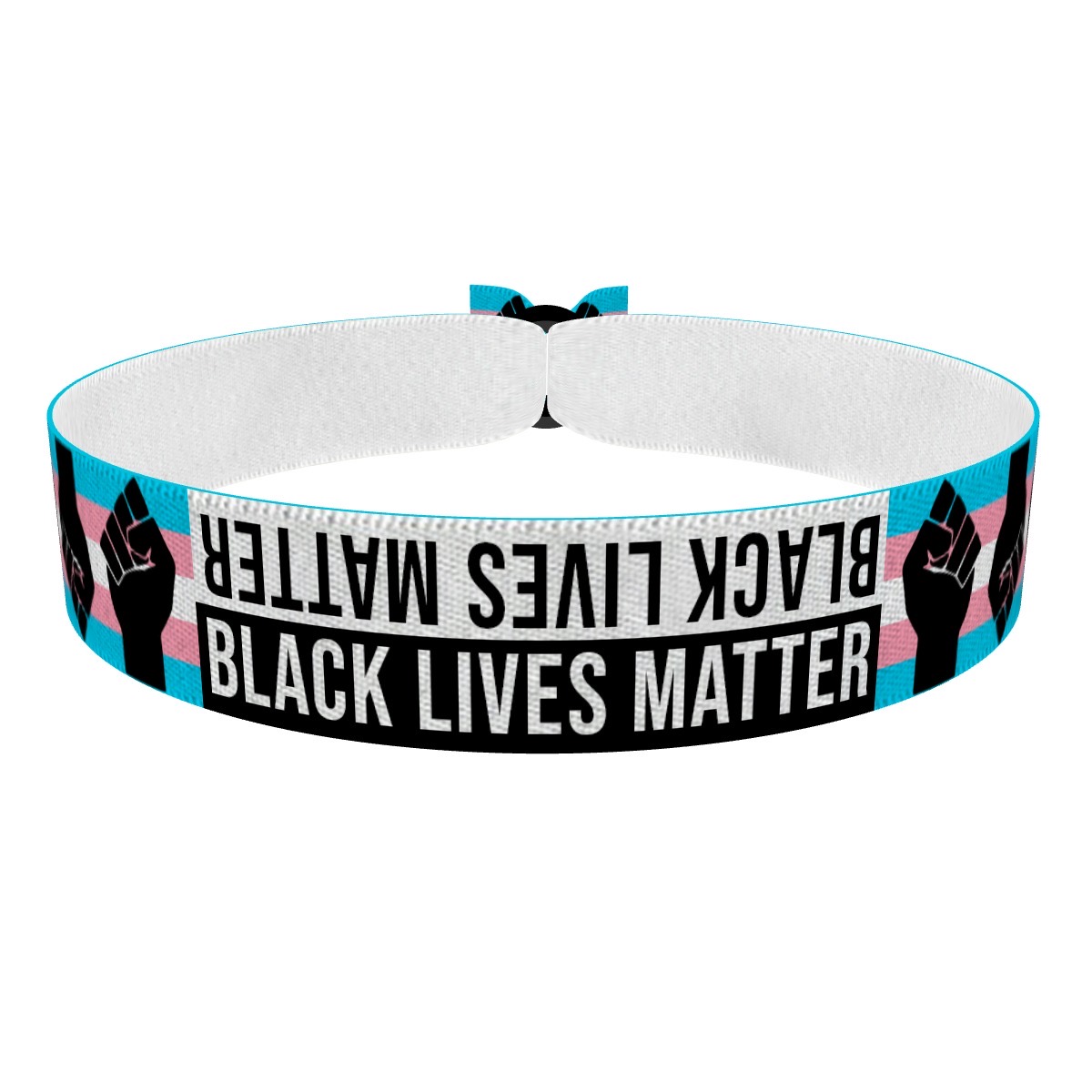 Entdecke das BLM Text Fäuste Transgender Stoffarmband