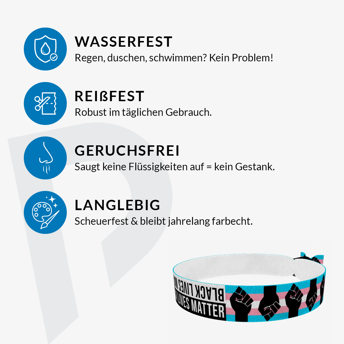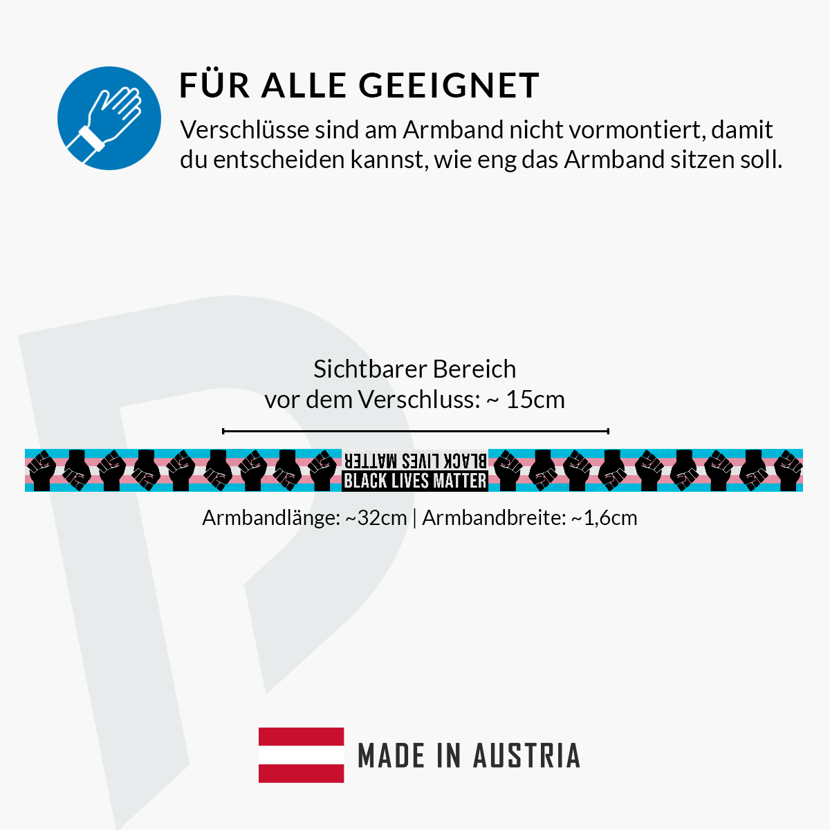 Frage zu "BLM Text Fäuste Transgender Stoffarmband"