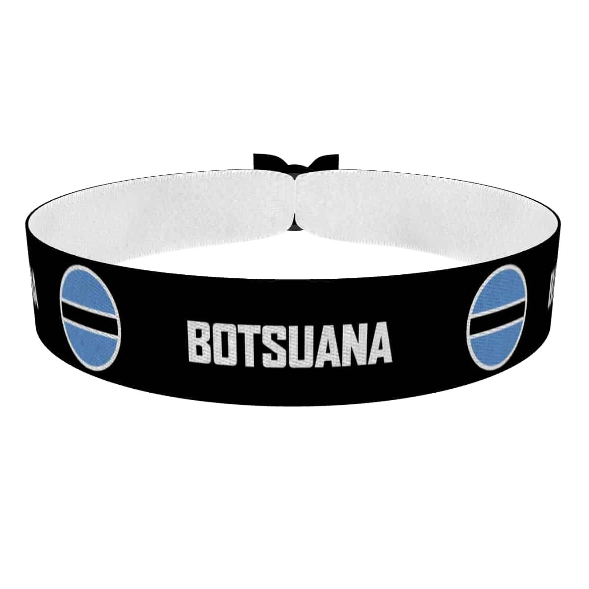 Suchst du nach dem perfekten Accessoire, um deine Liebe zu Botsuana zu zeigen? Dann ist unser Botsuana Flagge mit Ländername Stoffarmband genau das Richtige für dich! Dieses modische Armband kombiniert die Botsuana Fahne mit einem farbenfrohen und detailreichen Design. Ideal für alle, die für ihr Team bei der Weltmeisterschaft oder einfach nur für den nächsten Festivalbesuch zeigen möchten, wo ihre Länderliebe liegt.