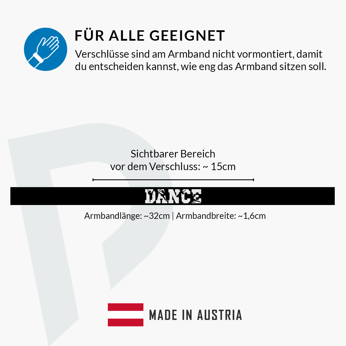 Ob als Freundschaftsarmband oder für dein nächstes Event – das Dance schwarz Armband passt zu jedem Outfit und ist ein echtes Tanz Zubehör für alle Tänzer! Mit seinem schlichten Design und den trendigen Materialien ist es das perfekte Sportarmband oder Freizeitarmband, das du immer tragen kannst.