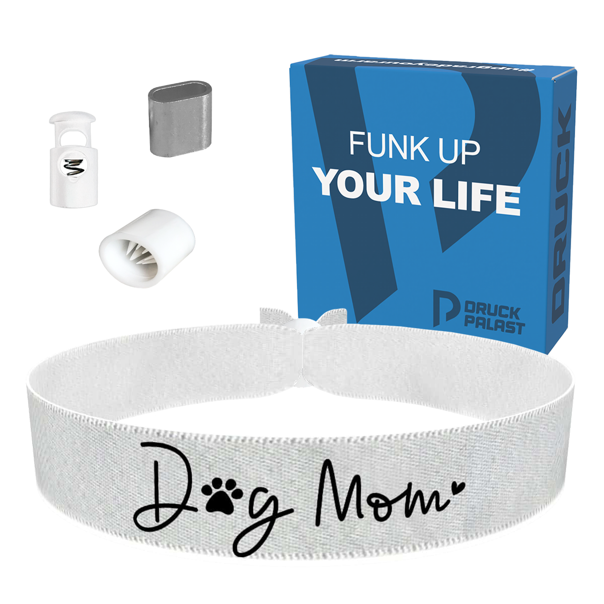 Entdecke das Dog Mom Stoffarmband weiß – das perfekte Accessoire für alle Hundeliebhaber! Dieses Stoffarmband ist nicht nur stylisch, sondern auch eine schöne Erinnerung an deinen Hund. Trage deinen vierbeinigen Freund immer am Handgelenk und zeige stolz deine Hundeliebe!