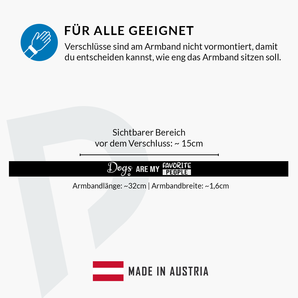 Wenn du ein echter Hundeliebhaber bist, dann ist unser Dogs are my favorite people Stoffarmband genau das richtige Accessoire für dich! Dieses Stoffarmband wird in Österreich hergestellt und besticht durch seine hohe Qualität. Mit einem farbenfrohen, detailreichen Design bedruckt, ist es das perfekte Armband für Tierfreunde, das dich überall begleiten kann.
