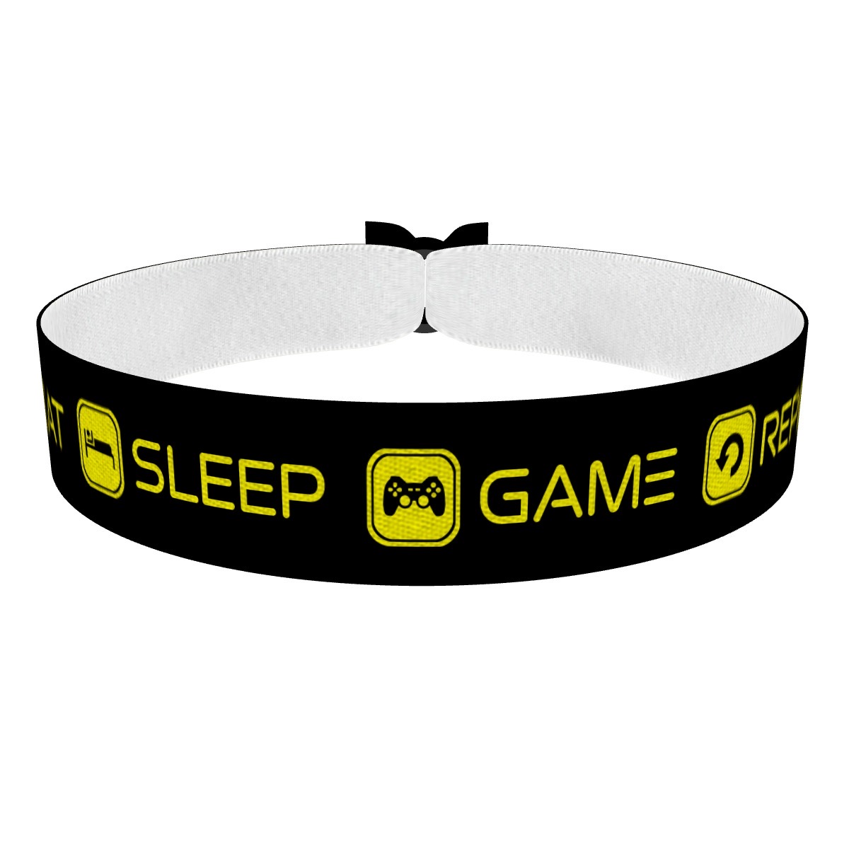 Das perfekte Gamer Stoffarmband: Eat Sleep Game Repeat schwarz/grün