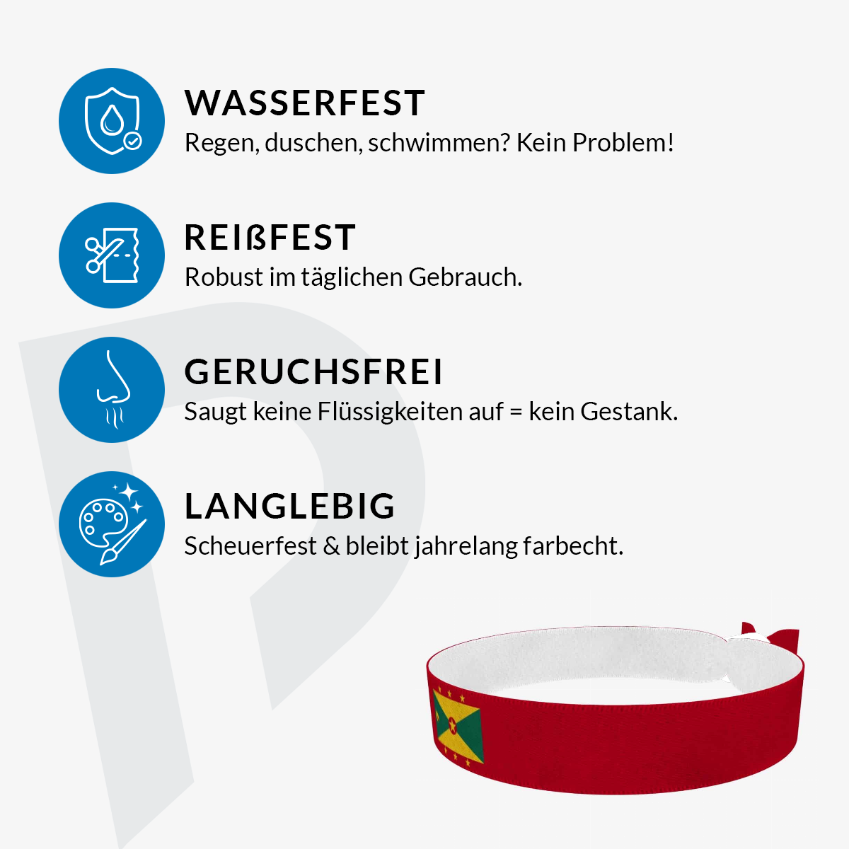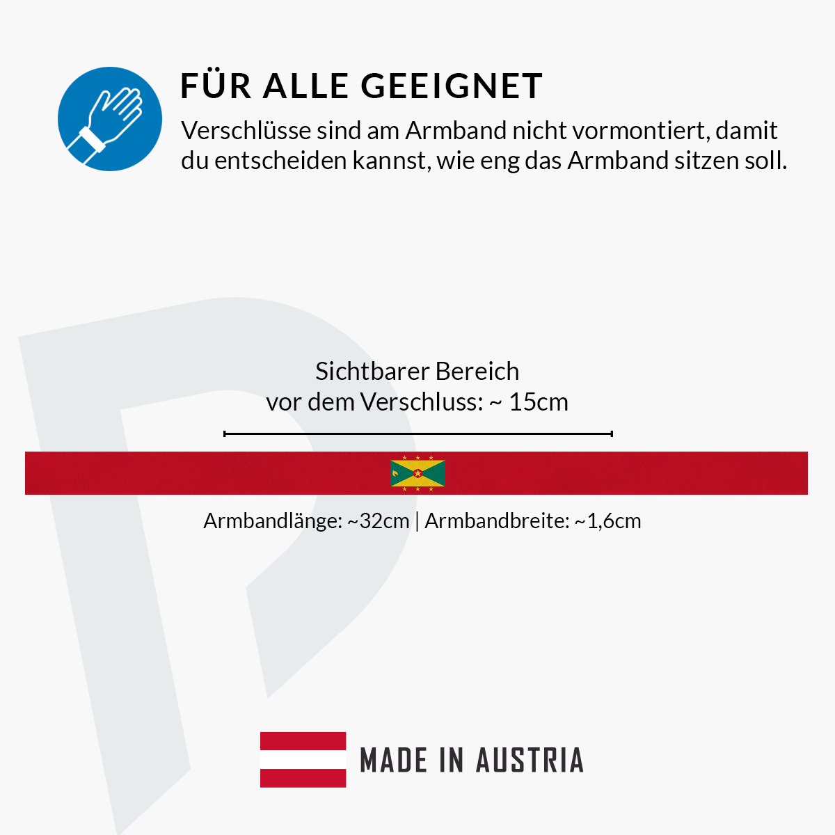 Das Grenada Stoffarmband wird in Österreich hergestellt und überzeugt durch seine hohe Qualität. Es hält jahrelang und ist mit einem farbenfrohen, detailreichen Design bedruckt, das die Grenada Fahne perfekt zur Geltung bringt. Trage das Armband bei Festivals, Sportevents oder einfach im Alltag – es ist ein echter Hingucker!