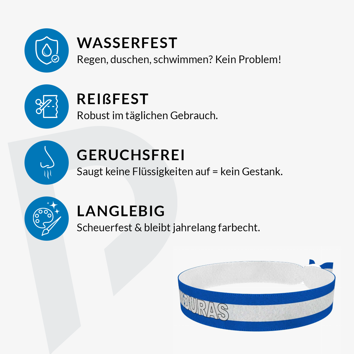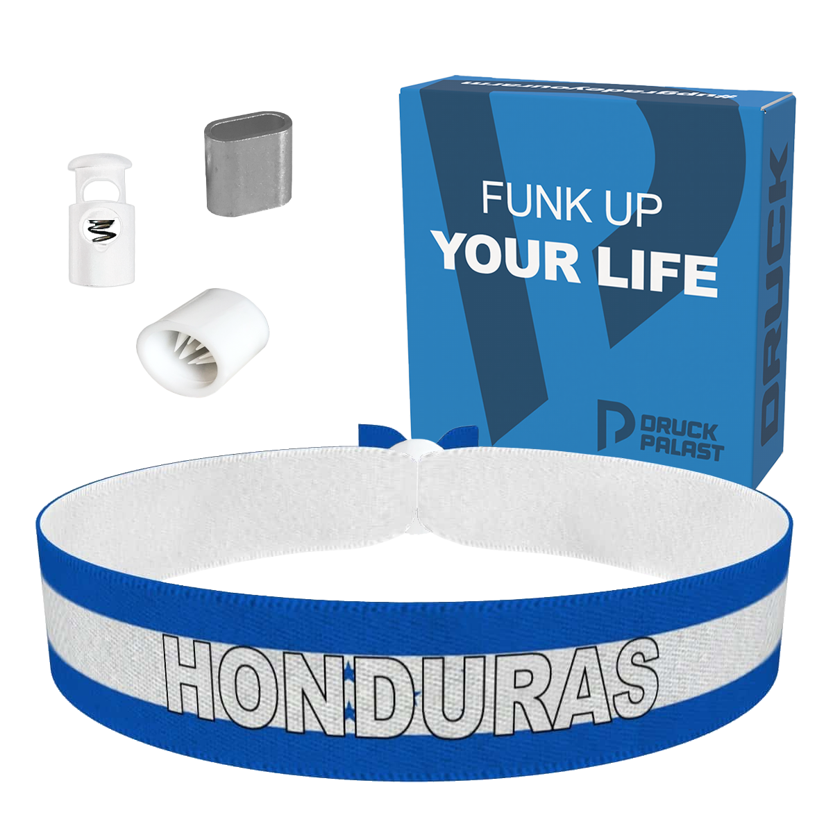 Das Honduras Fanarmband besticht durch seine hohe Qualität und ist sowohl wasser- als auch abriebfest. Es hält jahrelang und bleibt auch bei den wildesten Feiern farbenfroh! Ideal als Festival-Armband oder Reisearmband Honduras. Es ist ein trendiges Unisex-Armband, das zu jedem Outfit passt und ein modisches Statement setzt.