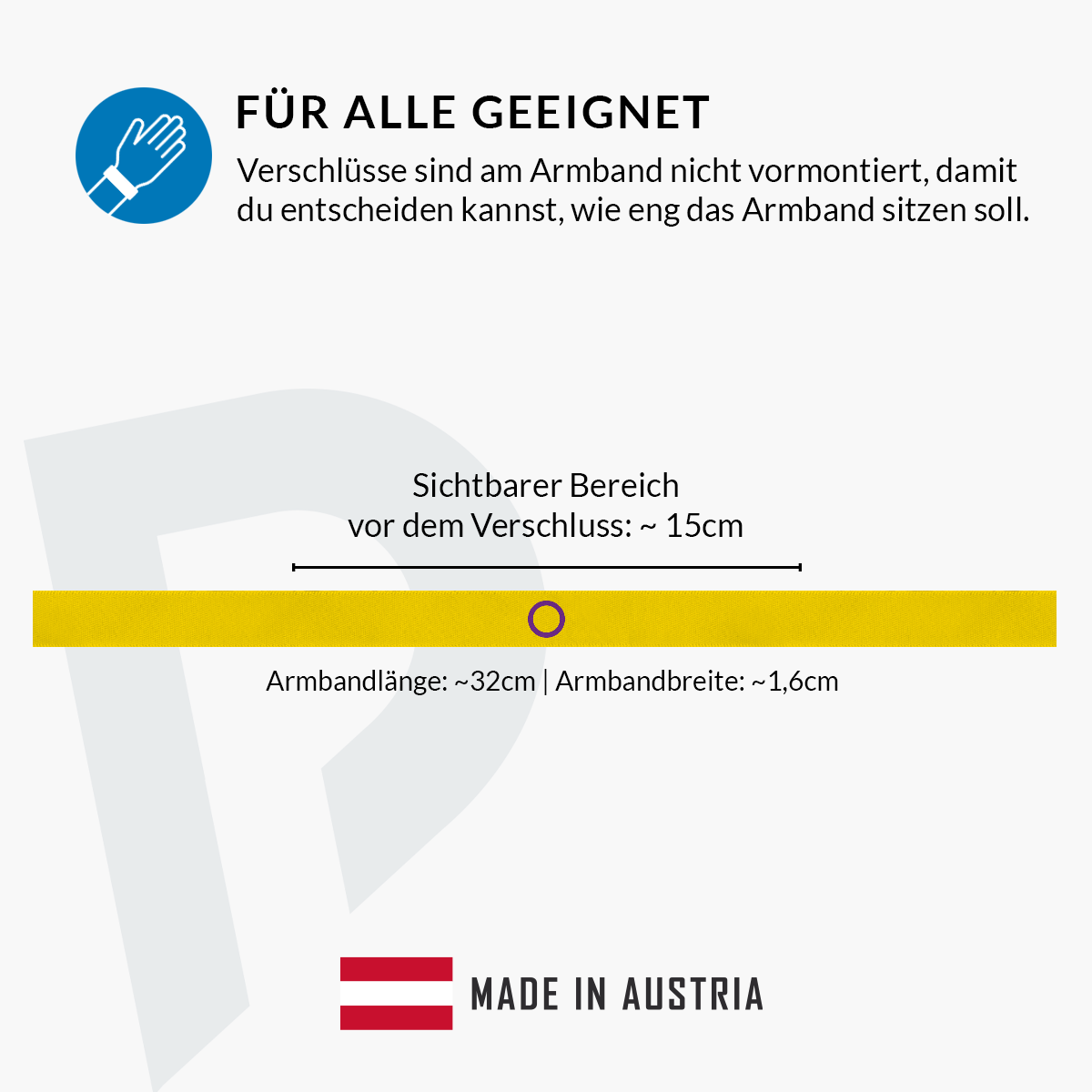Special: Zu jedem Stoffarmband bekommst du 3 Verschlüsse: 1 x Plastik, 1 x Schnellverschluss (kann man jederzeit abnehmen und wieder rauf geben) und 1 x Metall (Spitzzange wird benötigt) – so kannst du selbst entscheiden, welchen Verschluss du auf deinem Armband haben möchtest.