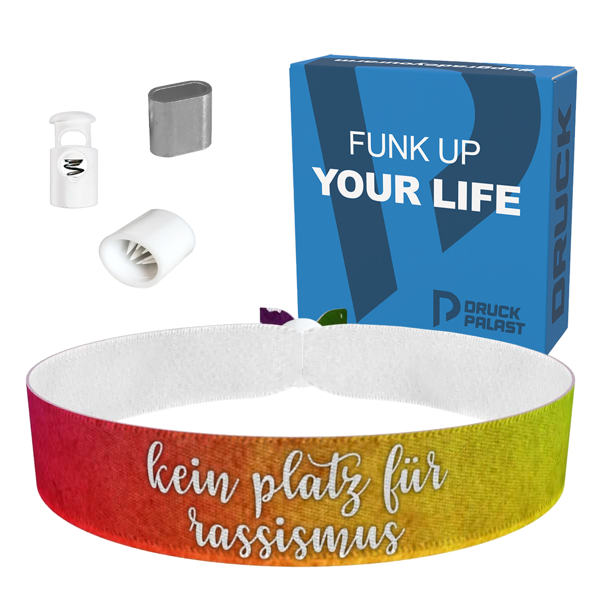 Das Armband für Unterstützung ist mehr als nur ein Fashion-Armband – es ist ein Zeichen für Liebe, Respekt und Zusammenhalt. Mach mit und setze ein Zeichen gegen Rassismus. Hol dir dein Kein Platz für Rassismus Stoffarmband und werde Teil der Veränderung!