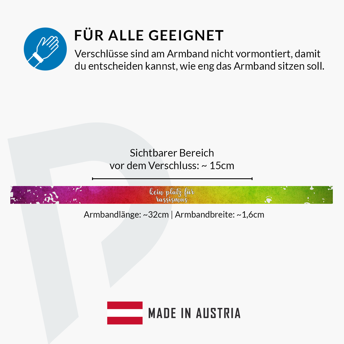 Zeig Flagge gegen Rassismus mit unserem Kein Platz für Rassismus Stoffarmband! Dieses handgemachte Armband für Toleranz ist nicht nur ein modisches Accessoire, sondern auch ein starkes Statement-Armband für soziale Gerechtigkeit und Vielfalt. Hergestellt in Österreich, vereint es höchste Qualität mit einem umweltbewussten Design. Egal ob als Geschenkidee für Freunde oder als Festival-Armband für dein nächstes Event – dieses Satinarmband ist ein echtes Fashion-Armband für alle, die für Frieden und Liebe eintreten.