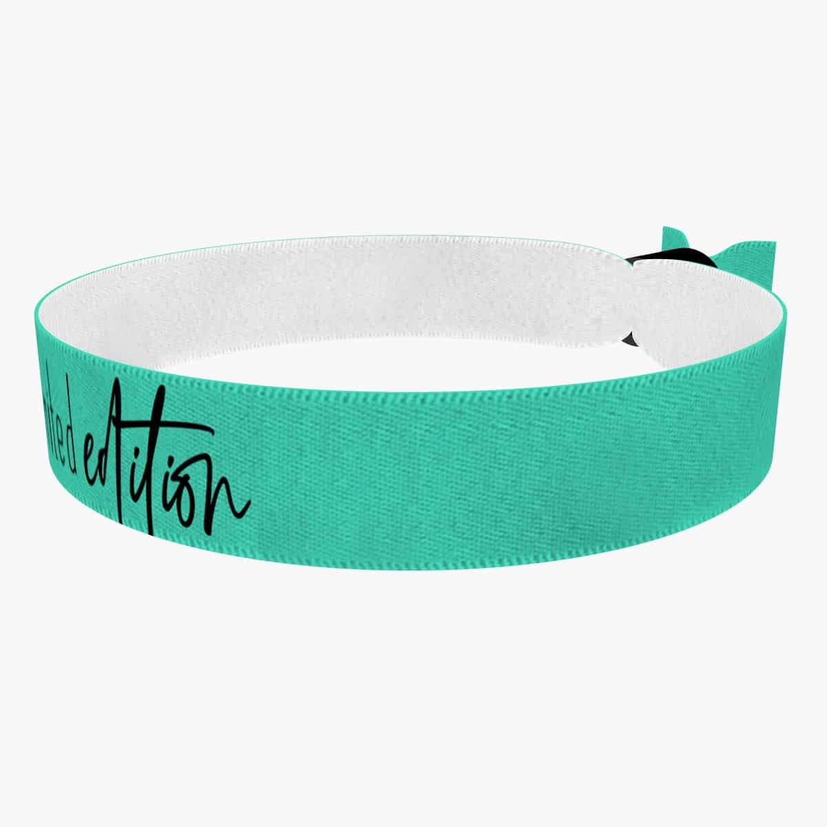 Unsere bedruckten Stoffarmbänder sind dünner & qualitativer als übliche Festivalbänder! Sie sind wasser-, reiss- & abriebfest und werden von uns in Handarbeit produziert!