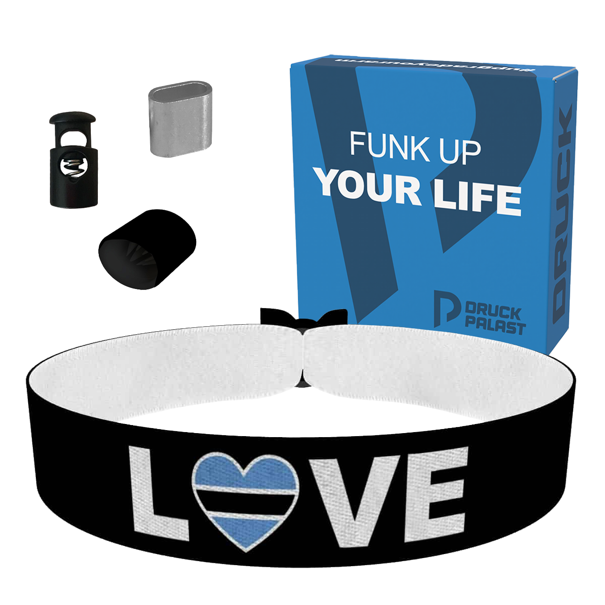 Special: Zu jedem Stoffarmband bekommst du 3 Verschlüsse: 1 x Plastik, 1 x Schnellverschluss (kann man jederzeit abnehmen und wieder rauf geben) und 1 x Metall (Spitzzange wird benötigt) – so kannst du selbst entscheiden, welchen Verschluss du auf deinem Armband haben möchtest.