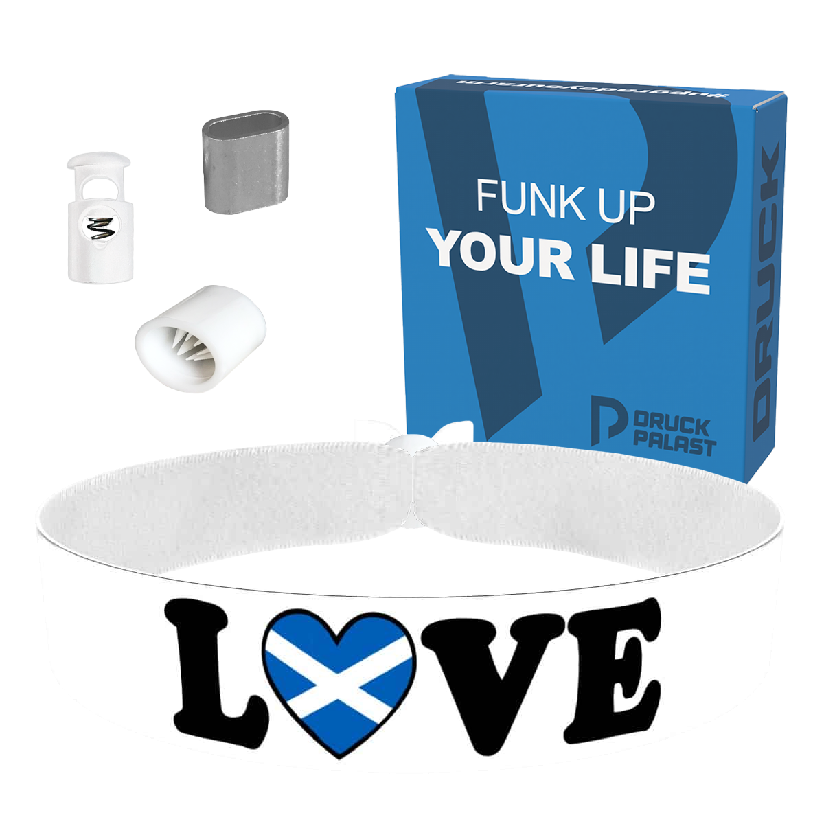 Love Schottland Stoffarmband weiß