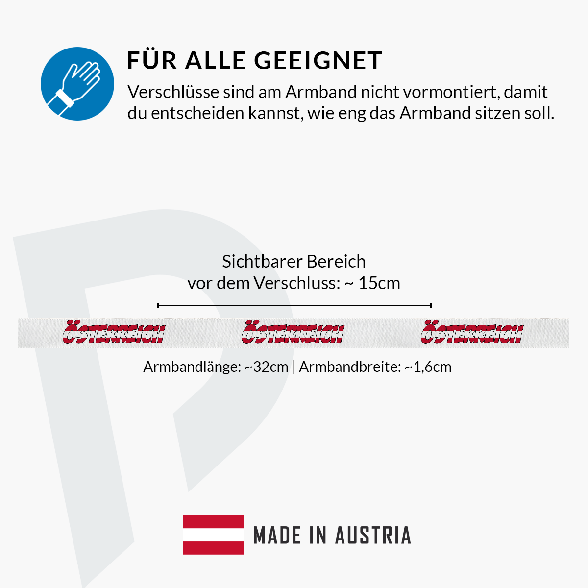 Mit dem Österreich Stoffarmband holst du dir ein Stück Heimat und ein modisches Statement in einem. Perfekt für alle Globetrotter, Naturliebhaber und Sportler, die ihre Heimatliebe zeigen möchten. Also schnapp dir dein Österreich Armband und lass die Vorfreude auf deinen nächsten Urlaub beginnen!