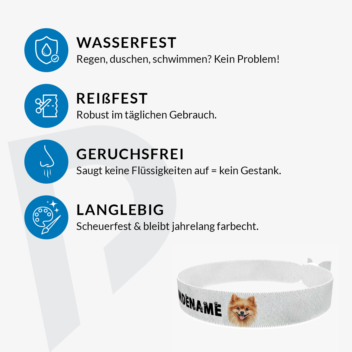 Pomeranian Stoffarmband anpassbar mit Name – Das Must-Have für Hundeliebhaber!