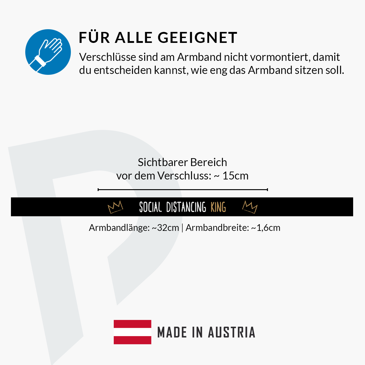 Entdecke das Social Distancing King schwarz Stoffarmband – das perfekte Accessoire für alle, die Stil und Statement zugleich lieben! Handgemacht in Österreich, vereint dieses modische Armband Qualität und Langlebigkeit. Es ist wasser- und abriebfest, sodass du es beim Sport, auf Festivals oder einfach im Alltag tragen kannst, ohne dir Sorgen zu machen.