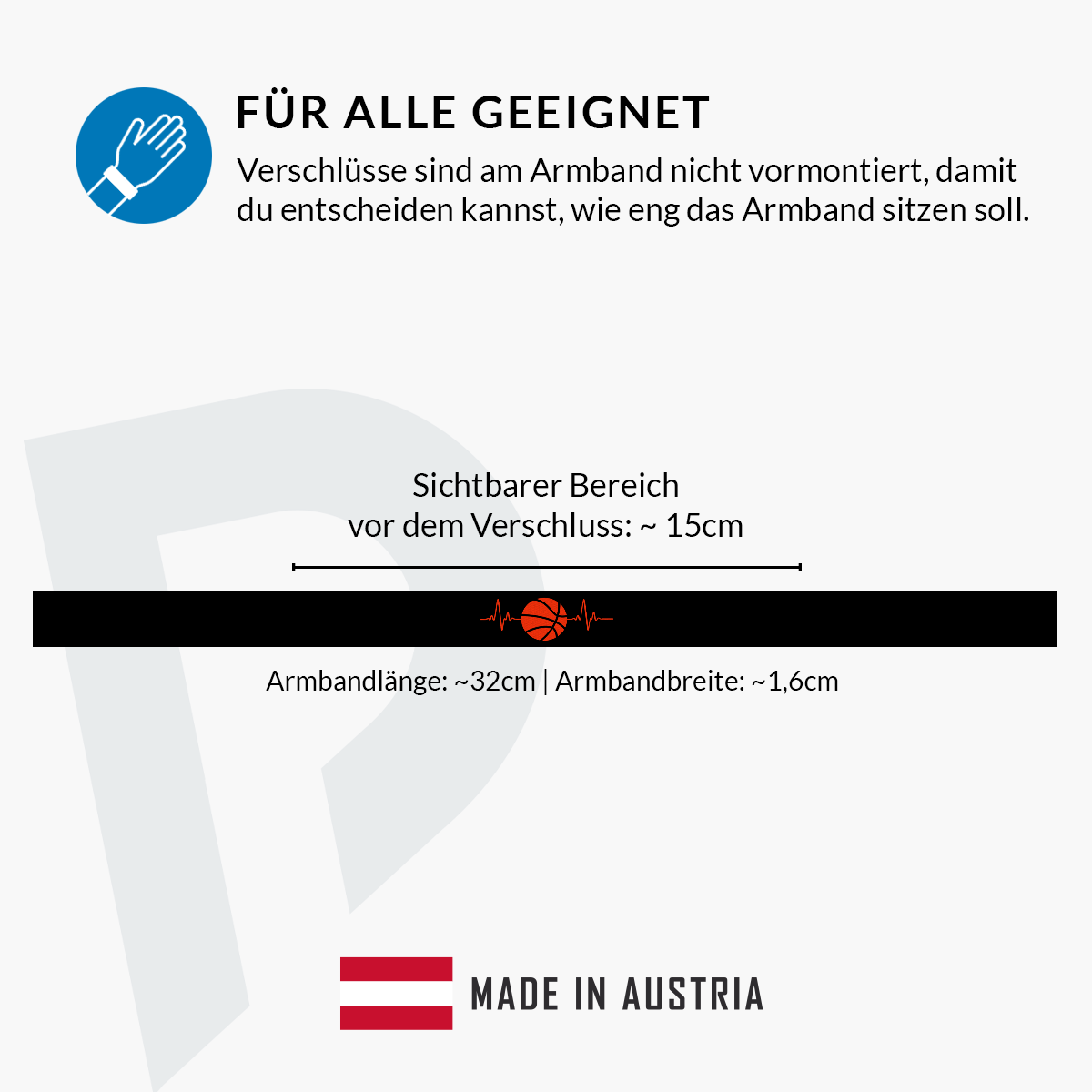Entdecke unser sportliches Armband mit Basketball und Herzschlagmotiv, das nicht nur dein Handgelenk schmückt, sondern auch deine Leidenschaft für den Sport ausdrückt! Hergestellt in Österreich, überzeugt dieses Stoffarmband durch hohe Qualität und Langlebigkeit. Das detailreiche und farbenfrohe Design macht es zum perfekten Sport-Geschenk für alle Sportbegeisterten.