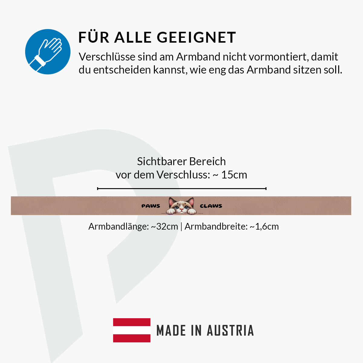 Hergestellt in Österreich, steht das Stoffarmband für hohe Qualität und Langlebigkeit. Mit einem farbenfrohen, detailreichen Design bedruckt, bringt es die Katzenmotive perfekt zur Geltung. Egal ob bei Festivals, Veranstaltungen oder einfach im Alltag – mit diesem Armband für Katzenfreunde zeigst du deine Liebe zu Katzen stilvoll und trendy.