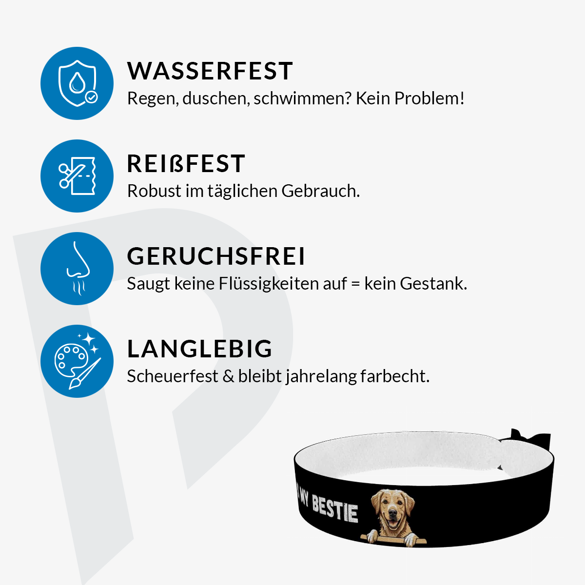 Du bist auf der Suche nach einem besonderen Hundeliebhaber Geschenk? Das Stoffarmband My Dog is My Bestie eignet sich hervorragend als Geschenk für Hundeliebhaber und ist eine tolle Idee für jeden Hundehalter. Mit einem Armband mit persönlicher Note zeigst du deinen Lieben, wie sehr du ihren vierbeinigen Freund schätzt.
