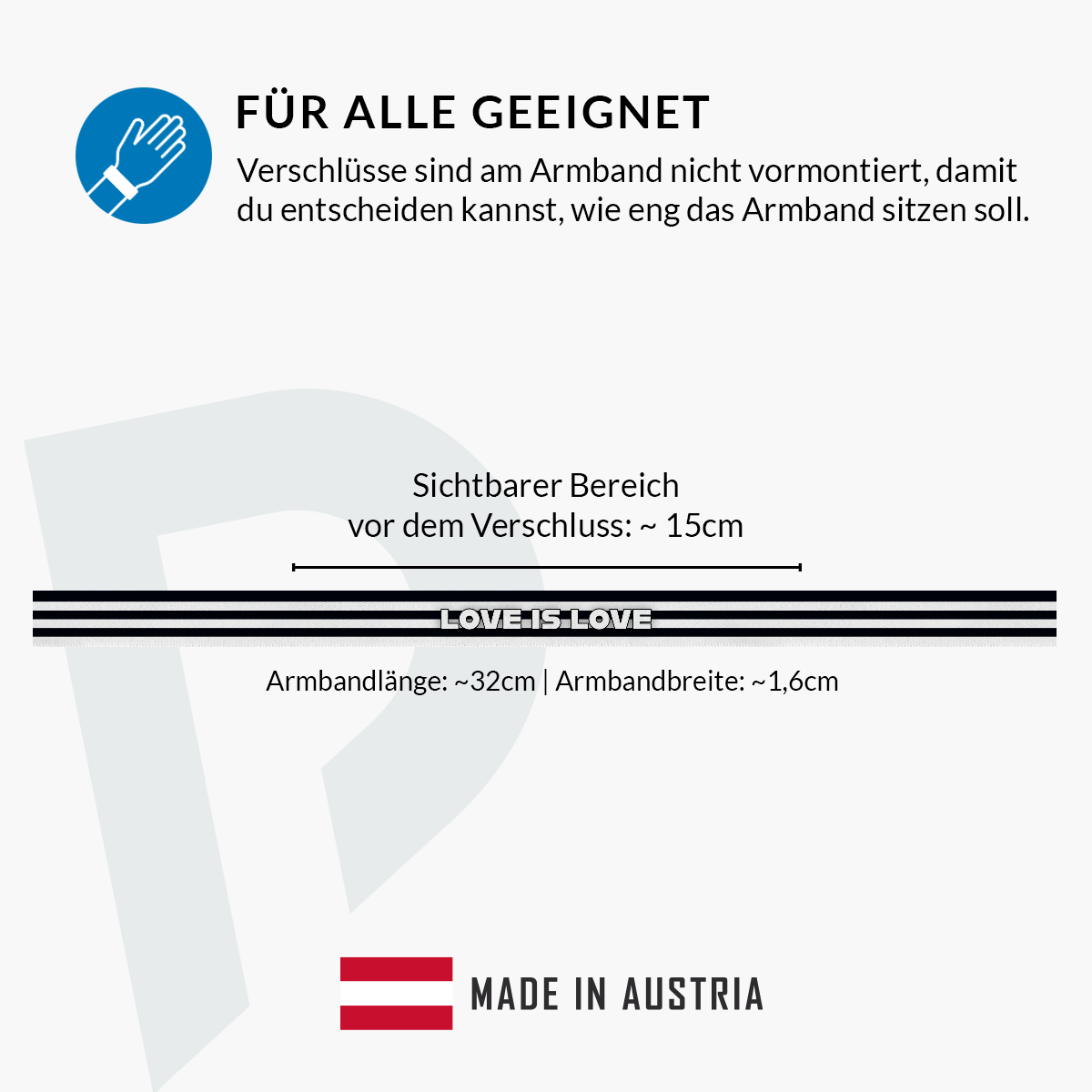 Entdecke das Straight – Love is Love weiß Stoffarmband – das perfekte Accessoire für alle, die stolz auf ihre Heterosexualität sind! Dieses handgemachte Stoffarmband wird in Österreich gefertigt und überzeugt durch hohe Qualität. Es ist nicht nur wasser- und abriebfest, sondern hält auch jahrelang, egal, ob beim Festival, im Alltag oder beim Sport.