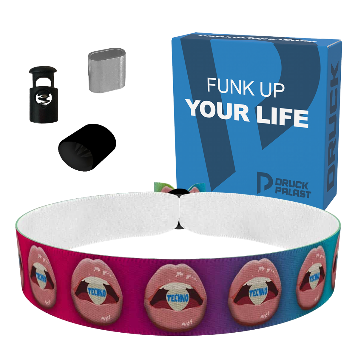 Mit dem Techno Pill Stoffarmband erhältst du nicht nur ein Armband für die nächste Party, sondern auch ein Stilvolles Armband für jeden Tag. Ob als Festival-Gadget oder einfach als Modeaccessoire, es passt zu jedem Outfit und jeder Gelegenheit. Und das Beste? Es ist aus recyceltem Material gefertigt – gut für dich und die Umwelt!