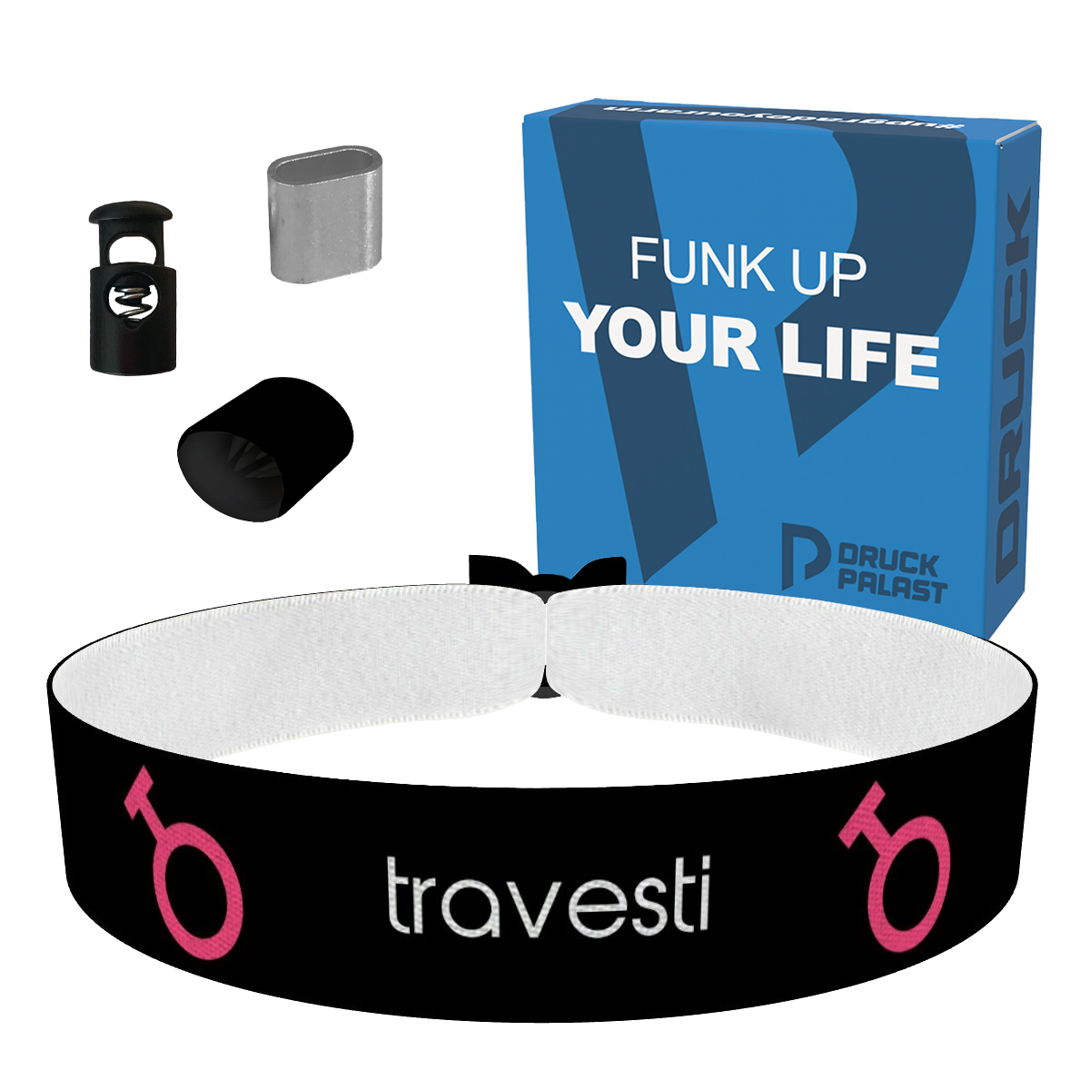 Warum das Travesti Symbol Text schwarz Stoffarmband?