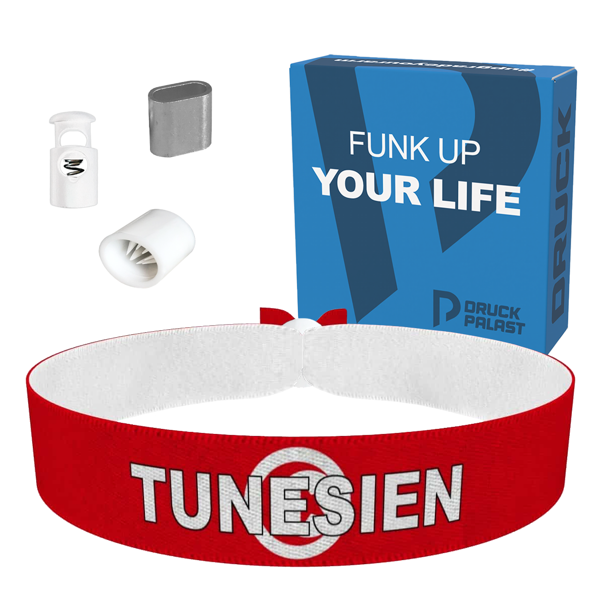 Zeige deinen Nationalstolz mit unserem Tunesien Flagge mit Ländername Stoffarmband! Dieses handgemachte Stoffarmband aus Österreich ist das perfekte Event Merchandise für alle Tunesien Fans und Fußballfans! Egal ob zur Weltmeisterschaft, beim Festival oder als Geschenk für Sportler, unser Farbenfrohes Armband ist ein echtes Modeaccessoire für jeden Anlass.