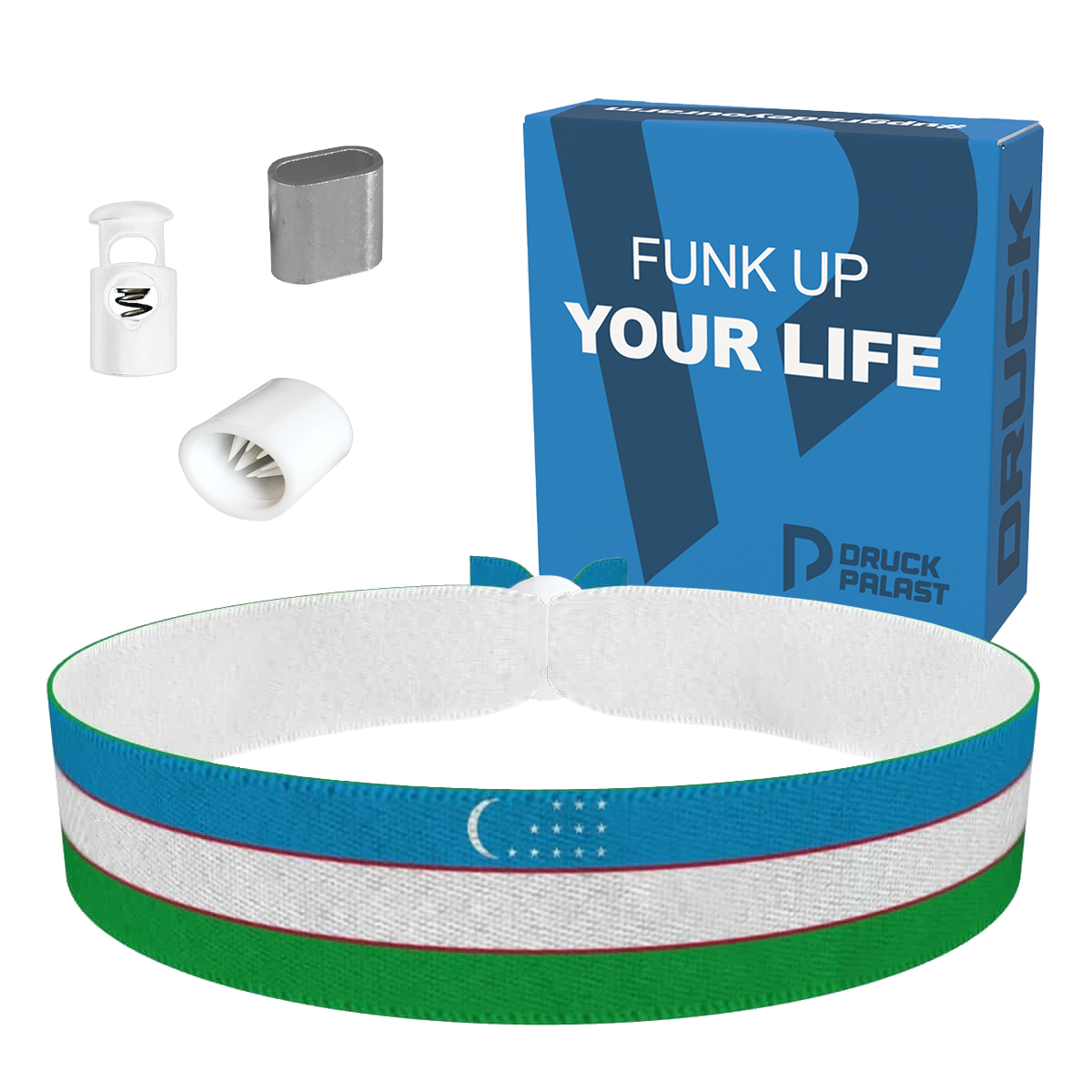 Ob als Usbekistan Fanarmband zur WM oder als patriotisches Armband für Nationalfeiertage – dieses Armband für Sportevents bringt den Teamgeist direkt an dein Handgelenk! Hergestellt in Österreich, überzeugt es nicht nur durch seine hohe Qualität, sondern auch durch ein farbenfrohes, detailreiches Design, das die Nationalflagge Usbekistan perfekt zur Geltung bringt.