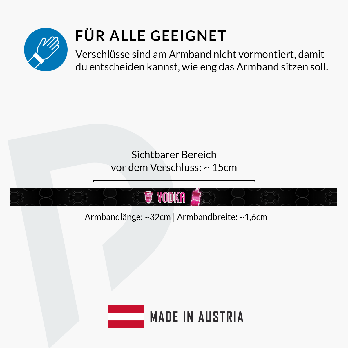 Wenn du auf der Suche nach dem perfekten Armband für Partys bist, dann ist unser Vodka Stoffarmband genau das richtige für dich! Hergestellt in Österreich, vereint es hohe Qualität mit einem farbenfrohen, detailreichen Design. Dieses Stoffarmband ist nicht nur ein modisches Accessoire, sondern auch ein echtes Party Zubehör für alle deine Veranstaltungen.