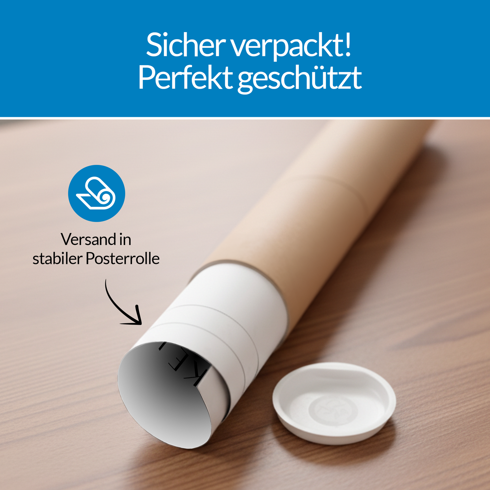 WICHTIG: du erhältst ausschließlich das Poster OHNE RAHMEN. Das bedeutet, du hast die Freiheit, einen Rahmen zu wählen, der perfekt zu deinem Einrichtungsstil passt. In jedem Einrichtungshaus, wie zum Beispiel IKEA, oder bei Amazon findest du eine Vielzahl an Optionen, die dein Poster ideal zur Geltung bringen. So kannst du Geld sparen und den Rahmen nach deinem persönlichen Geschmack auswählen!